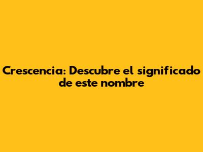 Crescencia: Descubre El Significado De Este Nombre
