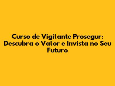 Uma das principais dúvidas de quem busca o curso de vigilante é sobre o seu valor. O preço do curso de vigilante Prosegur pode variar dependendo da unidade, da carga horária e dos serviços inclusos. É importante pesquisar e comparar os valores em diferentes locais antes de tomar uma decisão. No entanto, o valor do curso não deve ser visto apenas como um custo, mas sim como um investimento em seu futuro. Ao fazer o curso, você estará adquirindo conhecimento, habilidades e certificação que podem aumentar significativamente suas chances de conseguir um emprego na área de segurança.