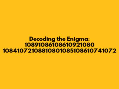 Ever stumbled upon a sequence of numbers that just made you scratch your head? Today, we're diving deep into a mysterious string: 10891086108610921080 10841072108810801085108610741072. What could it possibly mean? Well, buckle up, guys, because we're about to embark on a decoding adventure. Let's explore its potential origins, crack some possible meanings, and look at the different ways this numeric sequence might be interpreted. It could be anything from a coded message to a random series of digits, but whatever it is, we're going to dissect it. We'll explore different interpretations and consider all the possibilities. Could it be coordinates? A date? A secret code? Let’s find out! The world of cryptography and hidden meanings awaits! Get ready to put on your thinking caps and let's get started unravelling this mystery together. We'll consider various methods of decryption and analysis, and who knows, maybe we'll even find some similar patterns that can help us in our quest. So, are you ready to unlock the secrets hidden within these numbers? Let the decoding begin!