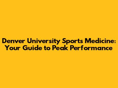 Denver University Sports Medicine: Your Guide To Peak Performance
