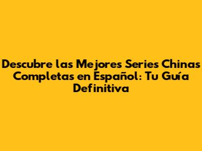 Descubre Las Mejores Series Chinas Completas En Español