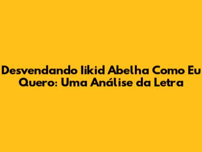 Análise Detalhada da Letra de 'Iikid Abelha Como Eu Quero'