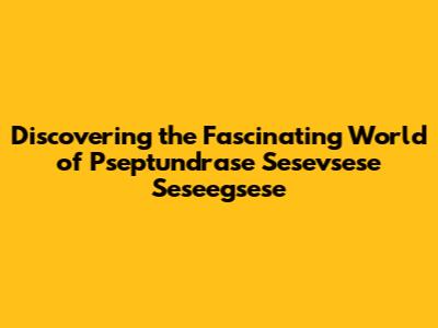 Discovering The Fascinating World Of Pseptundrase Sesevsese Seseegsese