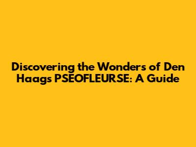 Discovering The Wonders Of Den Haag's PSEOFLEURSE: A Guide