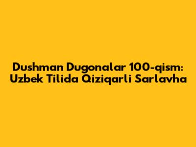 Dushman Dugonalar 100-qism: Uzbek Tilida Tomosha Qiling!