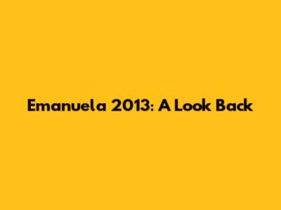 Hey guys! Today we're diving back into the past to revisit Emanuela 2013. It's fascinating how much can happen in a year, right? Let's take a stroll down memory lane and see what made 2013 so special for Emanuela.
