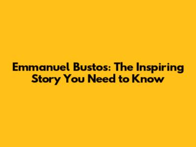 Emmanuel Bustos: The Inspiring Story You Need To Know