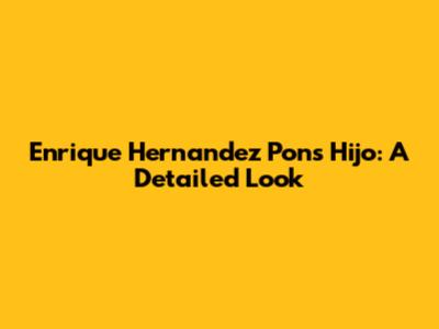 Hey guys! Today, we’re diving deep into the life of Enrique Hernandez Pons Hijo. While Enrique Hernandez Pons is a well-known figure, his son's story is equally fascinating. This article aims to provide a comprehensive overview, covering various aspects of his life, background, and achievements. Let’s get started!