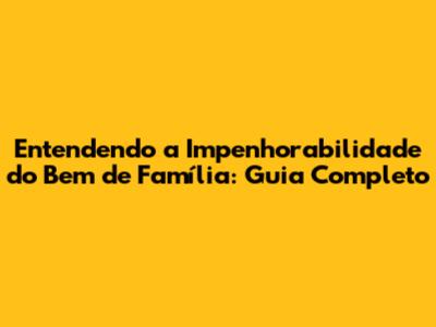 Entendendo A Impenhorabilidade Do Bem De Família: Guia Completo