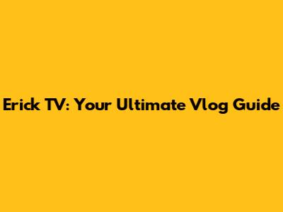 Erick TV: Your Ultimate Vlog Guide