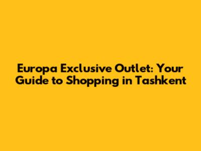 Hey guys! Are you planning a shopping spree in Tashkent and wondering where to snag the best deals on exclusive European brands? Well, look no further! This guide is your ultimate resource for exploring the Europa Exclusive Outlet in Tashkent. We'll dive deep into what makes this outlet a must-visit destination, from the brands it carries to the overall shopping experience you can expect. So, buckle up and let's get started on this exciting retail adventure!