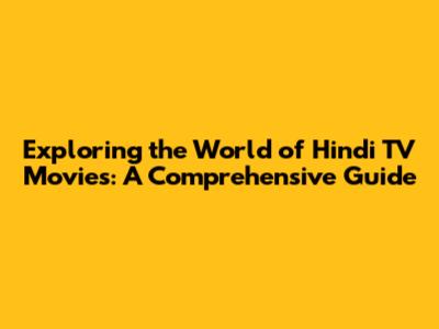 Exploring The World Of Hindi TV Movies: A Comprehensive Guide