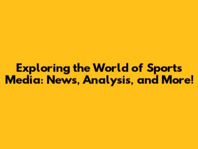 Exploring The World Of Sports Media: News, Analysis, And More!