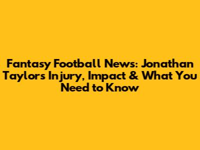 Fantasy Football News: Jonathan Taylor's Injury, Impact & What You Need To Know