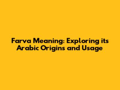 Farva Meaning: Exploring Its Arabic Origins And Usage
