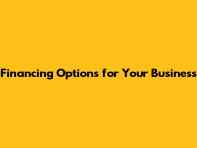 Financing Options For Your Business