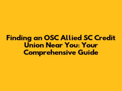 Finding an OSC Allied SC Credit Union Near You: Your Comprehensive Guide