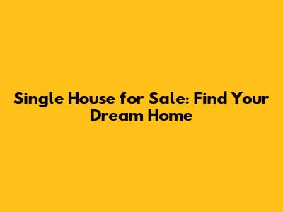 Find Your Dream Single House For Sale