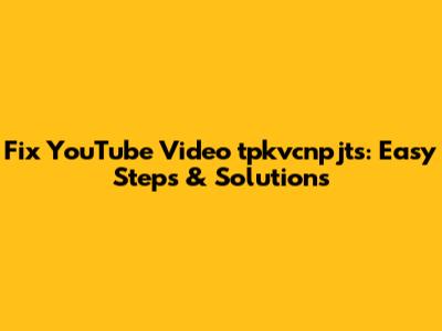 Fix YouTube Video Tpkvcnpjts: Easy Steps & Solutions