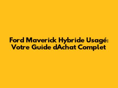 Ford Maverick Hybride Usagé: Votre Guide D'Achat Complet