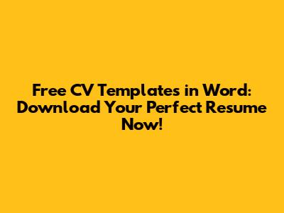 Free CV Templates In Word: Download Your Perfect Resume Now!
