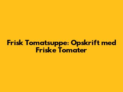 Hey folkens! I dag dykker vi ned i en rigtig hyggelig og lækker opskrift, der garanterer solskin på tallerkenen, uanset vejret udenfor: tomatsuppe med friske tomater. Glem alt om de der kunstige, vandede versioner fra dåse, for vi laver den helt fra bunden med saftige, modne tomater. Det er så meget nemmere, end I tror, og resultatet er bare uutroligt meget bedre. Vi snakker en dyb, rig smag, der bare skriger af sommer og god mad. Denne opskrift er perfekt til en kold aften, hvor man trænger til noget varmende, eller som en let og frisk forret til en hyggelig middag. Jeg vil guide jer trin for trin, så selv nybegyndere kan lave en tomatsuppe, der vil imponere selv den mest kræsne gane. Så find forklædet frem, og lad os komme i gang med at lave den bedste tomatsuppe, I nogensinde har smagt!