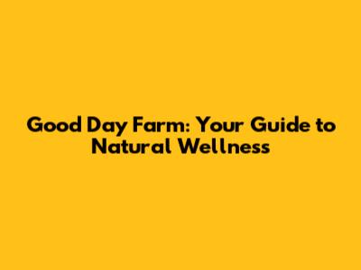 Good Day Farm: Your Guide To Natural Wellness