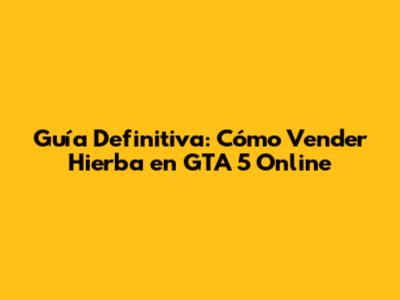 Guía Definitiva: Cómo Vender Hierba En GTA 5 Online