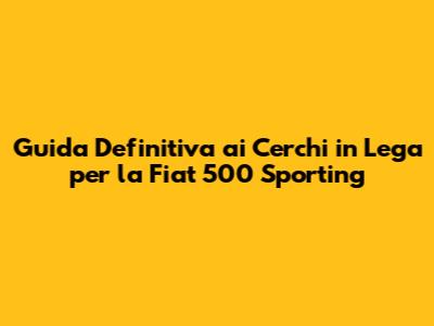 Ciao ragazzi! Se siete qui, probabilmente siete appassionati della Fiat 500 Sporting e volete sapere tutto sui cerchi in lega per questa fantastica auto. Siete nel posto giusto! In questa guida completa, esploreremo ogni aspetto dei cerchi in lega, dalla loro importanza estetica e funzionale, ai diversi tipi disponibili, fino a come scegliere quelli giusti per la vostra 500 Sporting. Preparatevi a trasformare la vostra auto in un vero gioiello su ruote!