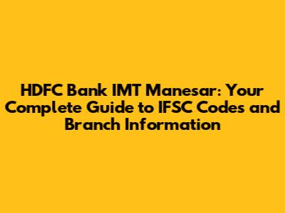 HDFC Bank IMT Manesar: IFSC Code & Branch Details