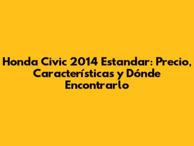 Honda Civic 2014 Estandar: Precio, Características Y Dónde Encontrarlo