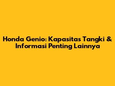 Honda Genio: Kapasitas Tangki & Informasi Penting Lainnya