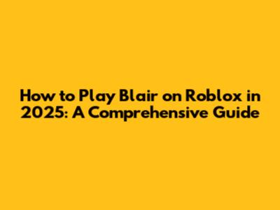 How To Play Blair On Roblox In 2025: A Comprehensive Guide