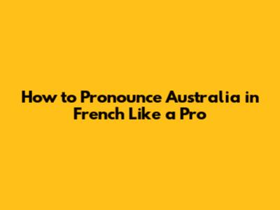 How To Pronounce Australia In French Like A Pro