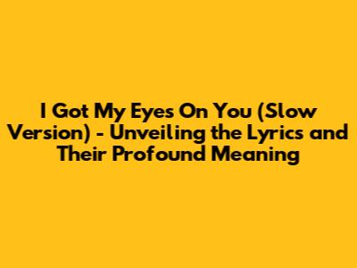 Hey everyone! Ever found yourself completely captivated by a song? That's totally me with "I Got My Eyes On You" (Slow Version). This track, with its raw emotion and haunting melody, has a way of sticking with you, right? Let's dive deep and explore the lyrics, the meaning, and everything that makes this song so special. I mean, the slow version just hits different, ya know?