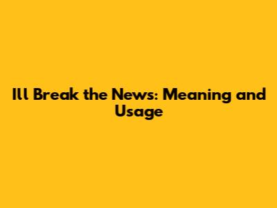 I'll Break The News: Meaning And Usage