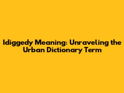 Idiggedy Meaning: Unraveling The Urban Dictionary Term