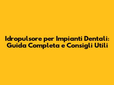Idropulsore Per Impianti Dentali: Guida Completa E Consigli Utili