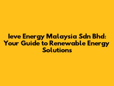 Ieve Energy Malaysia: Your Guide To Renewable Energy Solutions
