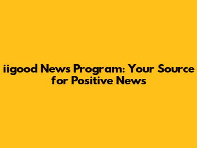 Iigood News Program: Your Source For Positive News
