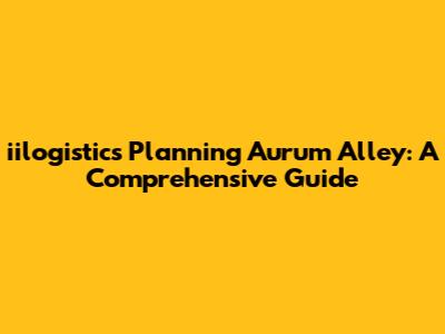 Iilogistics Planning Aurum Alley: A Comprehensive Guide