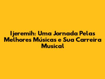 As Melhores Músicas de Ijeremih: Um Mergulho na Sua Discografia