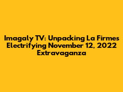 Hey everyone! Let's dive deep into the world of Imagaly TV and their incredible showcase on November 12, 2022, which prominently featured La Firme. This event was a total game-changer, filled with amazing content and performances that had everyone buzzing. If you missed it, don't worry, because we're going to break down everything that made this night so unforgettable. From the top-tier production to the unforgettable moments, we'll explore the key highlights and what made this particular show so special. This wasn’t just another live stream; it was a carefully crafted experience, designed to captivate and entertain from start to finish. So, grab your snacks, get comfortable, and let's get into the details of Imagaly TV's La Firme spectacle!