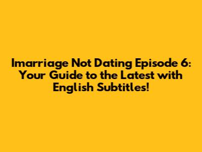 Hey guys, are you as hooked on Imarriage Not Dating as I am? This show is a rollercoaster of emotions, right? And if you're anything like me, you're always on the hunt for the latest episodes with those sweet, sweet English subtitles. Well, buckle up because we're diving deep into Imarriage Not Dating Episode 6, and trust me, there's a lot to unpack! This is your go-to guide for everything you need to know, from where to watch with English subtitles to what's got everyone buzzing. We'll break down the plot, the characters, and of course, those oh-so-important moments that leave us all screaming at our screens. So, grab your snacks, settle in, and let's get started. I'm so excited to share all the juicy details with you! This is going to be so much fun!