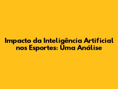 Impacto Da Inteligência Artificial Nos Esportes: Uma Análise