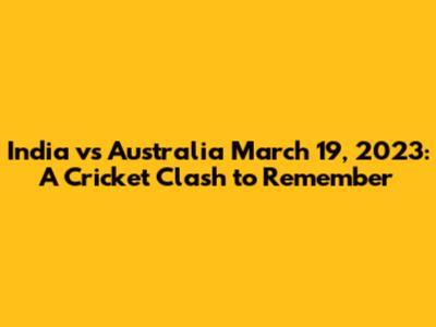 Hey sports fanatics! Remember the epic showdown between India and Australia on March 19, 2023? It was a match that had everyone on the edge of their seats, and today, we're diving deep into the highlights, the nail-biting moments, and everything in between. Whether you're a die-hard cricket fan or just someone who enjoys a good game, this recap will bring you right back to that unforgettable day. Buckle up, guys, as we relive the magic of India vs. Australia!