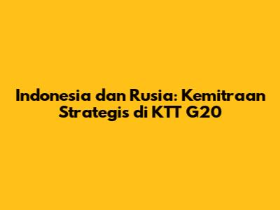 Indonesia Dan Rusia: Kemitraan Strategis Di KTT G20