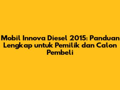 Innova Diesel 2015: Panduan Lengkap Pemilik & Calon Pembeli