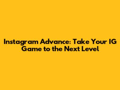 Instagram Advance: Take Your IG Game To The Next Level