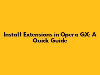 Install Extensions In Opera GX: A Quick Guide